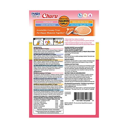 $24:[Prime]INABA Salmon Churu Cat Treats, Lickable, Squeezable Creamy Purée Cat Treat with Green Tea Extract & Taurine, 0.5 Ounces Each Tube, 60 Tubes, Salmon Variety Box