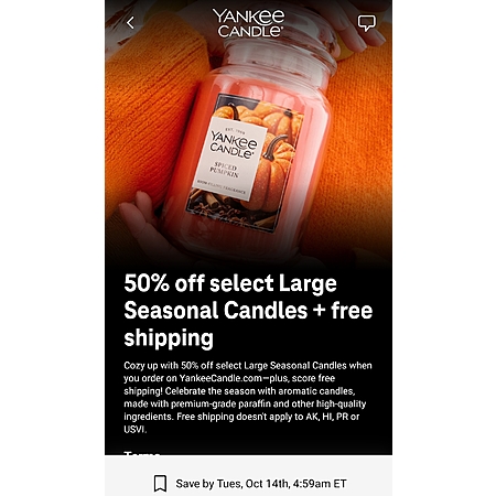 Yankee Candle: Cozy up with Yankee Candle. 50% off with select Large Seasonal Candles + free shipping. See terms.