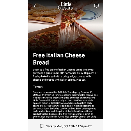 Little Caesars: Free Italian Cheese Bread with pizza purchase.