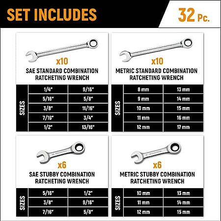 GEARWRENCH SAE/Metric 72-Tooth Combination Ratcheting Wrench Tool Set (32-Piece), $100, free shipping, Home Depot
