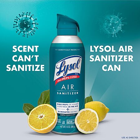 - HELP PROTECT FROM AIRBORNE PATHOGENS: Add Lysol Air Sanitizing Spray to your cleaning routine to eliminate 99.9 percent of viruses and bacteria in the air and help protect your family. (Use as directed).