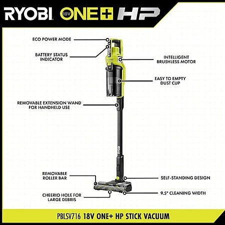 - Experience continuous cordless cleaning with RYOBI 18V ONE+ batteries sold separately