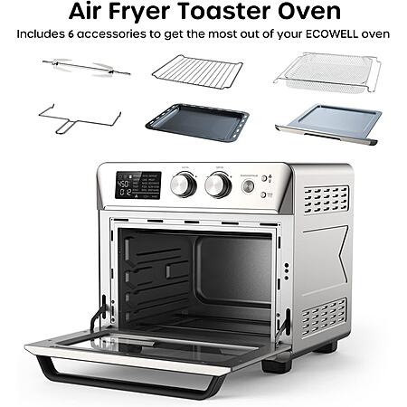 • 1x ECOWELL Air Fryer 26.4QT Stainless Steel 15-in-1 Air Fryer Toaster Oven