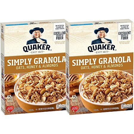 Quaker Simply Granola Honey & Almond, (Pack of 2)~$7.33 After Coupon & S&S @ Amazon