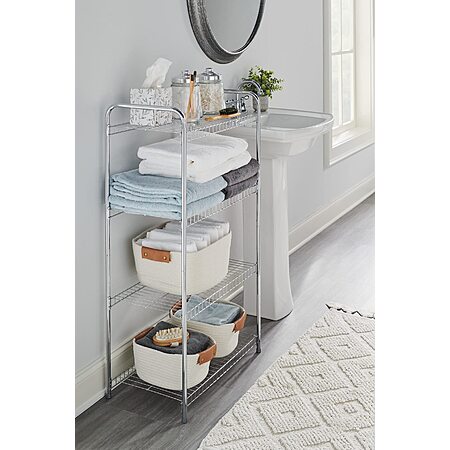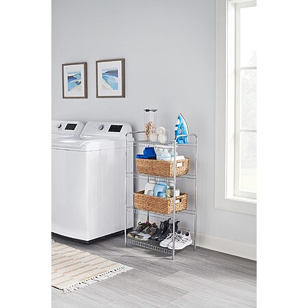 Amazon[amazon.com] has Rubbermaid 4-Tier Freestanding Heavy Duty Multipurpose Wire Shelf (Satin Nickel) for $16.43. Shipping is free w/ Prime or on $35+.