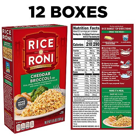 Model: Rice-A-Roni Cheddar Broccoli, 6.5 oz Boxes (12 Pack)