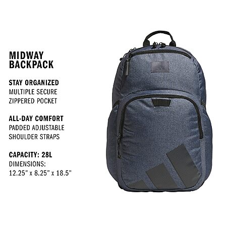 Amazon.com has adidas Midway Small Backpack for Women and Men, Durable Laptop Bag, Twill Onix Grey/Black, One Size on sale for $23