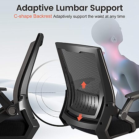 Ergonomic Office Chair with Flip-up Armrests Executive Computer Chair , Breathable Mesh & Adaptive Lumbar Support, Black $54 + Free Shipping w/ Prime or on $35+