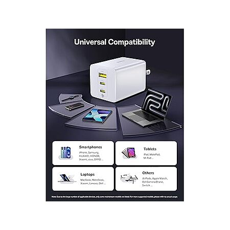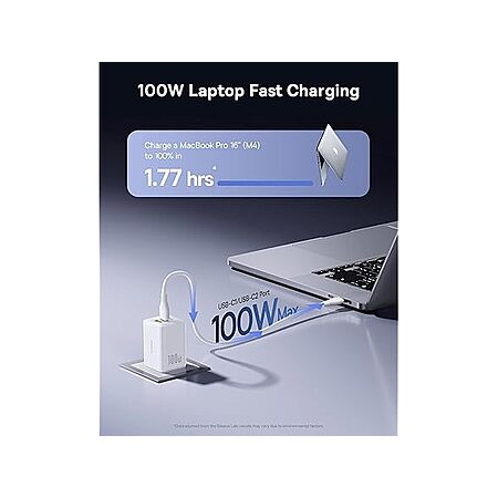 $25:Baseus 3-Port 100W USB C Charger Block(White and Black)