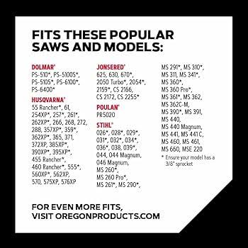 Oregon 3-Pack E72 PowerCut Chainsaw Chains for 20-Inch Guide Bars, 72 Drive Links, Pitch: 3/8", .050" Gauge,Grey $43.16