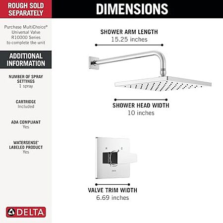 $153.45: Delta Faucet Modern Raincan Square Single-Function Shower Valve Trim Kit Brushed Nickel at Amazon