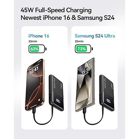 $13.76*: INIU 45W 10000mAh Slimmest USB C In / Out Power Bank w/ Built-in USB-C Cable at Amazon