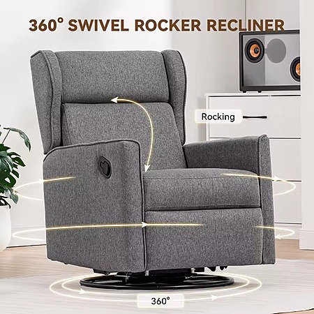 Comhoma 360° Swivel Rocker Recliner Nursery Sofa Chair (White or Dark Gray) $130.10 + Free Shipping