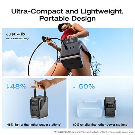 EF ECFLOW TRAIL 200 DC Portable Power Station with Camping Lamp, 192Wh LiFePO4 Battery $132