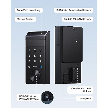Model: eufy FamiLock S3 Max, Smart Lock with Palm Vein Recognition, Keyless Entry Door Lock for Front Door, 3-in-1 Wi-Fi Keypad Deadbolt+ 2K HDR Camera+ Doorbell, ANSI/BHMA Grade 1, Rear Lock Video Screen