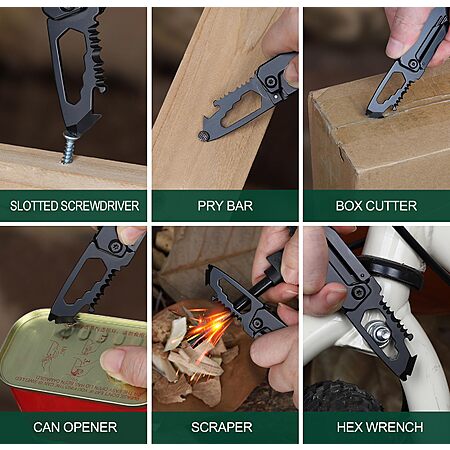 • This EDC Knife includes a key clip, sharp blade, bottle opener, hex wrench, scraper, slotted screwdriver, pry bar, and more