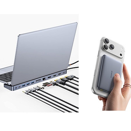 Baseus Brand Store via Amazon [amazon.com] has Baseus Laptop Docking Station, 4K Multitasking Docking Station + Baseus 10000mah Picogo Qi2 Certified Magsafe Portable Ultra Slim Charger for $69.99 . Shipping is free.