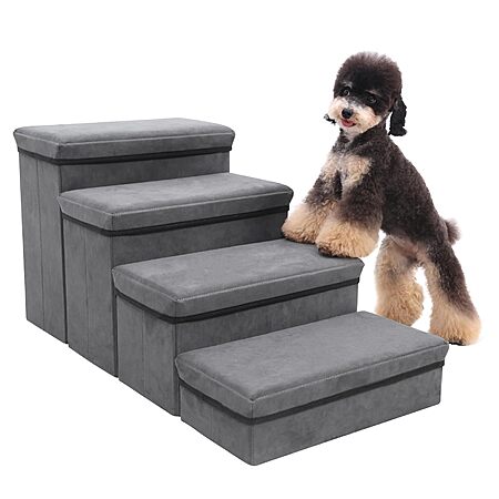 Foldable Dog Stairs 4 Tier Pet Steps, for Small Medium Dogs Pet Steps Storage Stepper for High Beds Sofa (4 Step) $26.99