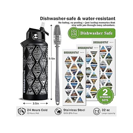 32-Oz National Parks Water Bottle w/ Bucket List Stickers (Black) back in stock for