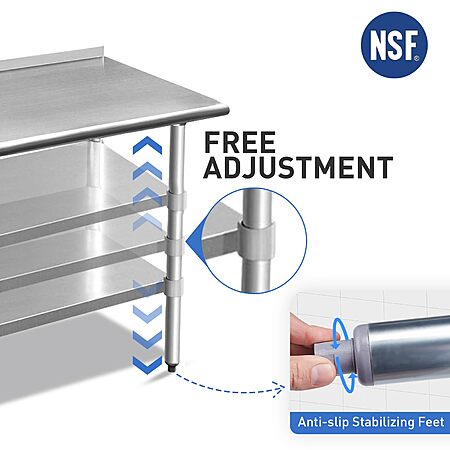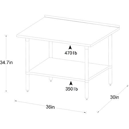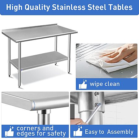 $116.6:ROCKPOINT Stainless Steel Prep & Work with Backsplash 30x36 Inches
