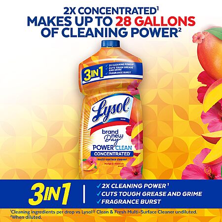 Model: Lysol Power Clean Multi-Surface Cleaner, 2x Concentrated Pour, Mango & Hibiscus, 28 Fl Oz