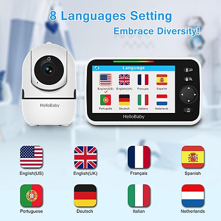 Model: HelloBaby Upgrade Monitor, 5''Sreen with 30-Hour Battery, Pan-Tilt-Zoom Video Baby Monitor with Camera and Audio, Night Vision, VOX, 2-Way Talk, 8 Lullabies and 1000ft Range No WiFi, Ideal Gifts