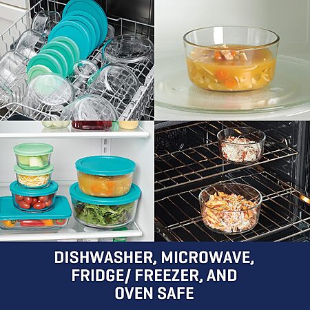 - STORE AND REHEAT: Fridge, freezer, oven, microwave – 4 needs, 1 dish. Save time moving foods, cleaning, and organizing. Glass containers are tempered tough to handle high temperatures (up to 425).