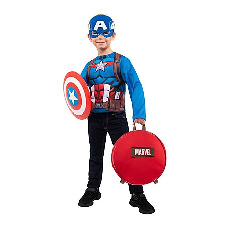 [Prime] Marvel Captain America Superpower Pak Backpack w/ 12" Shield, Throwing Discs, Long Sleeve Costume Top & Plastic Mask (Youth, Med) $29.49 + Free S/H