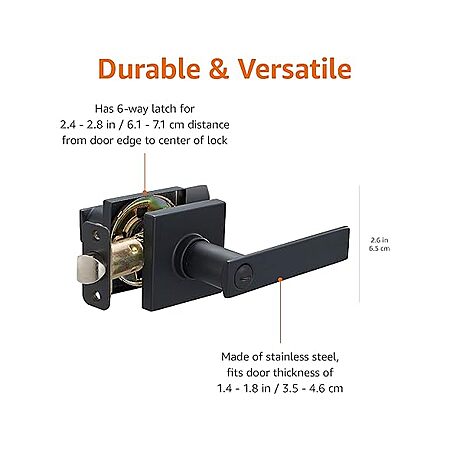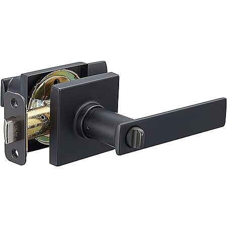 $29.99:Amazon Basics Bedroom/Bathroom Contemporary Stamford Door Levers, 65mm Dia x 107mm L, Interior Privacy, Matte Black