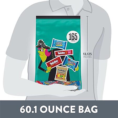 $15.38: 60.1-Oz HARIBO, JOLLY RANCHER and TWIZZLERS Assorted Fruit Flavored, Halloween Candy Bulk Bag (165 Pieces) at Amazon