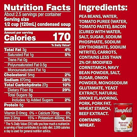 Model: Campbell's Condensed Bean With Bacon Soup, Natural Smoke Flavoring Added, 11.25 oz Can