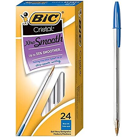 [S&S] $3.58: 24-Count BIC Cristal Xtra Smooth Ballpoint Pens (Blue Ink, Medium Point, 1.0mm) at Amazon