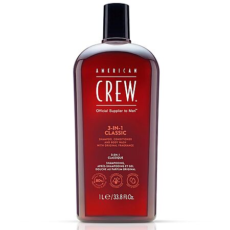 33.8 Fl Oz American Crew 3-in-1 Shampoo, Conditioner & Body Wash for Men (Clean)