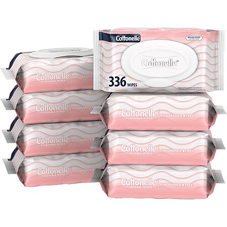 Cottonelle Fragrance Free Flushable Wet Wipes, Adult Wet Wipes, 8 Flip-Top Packs, 42 Wipes Per Pack - $11.05 at Amazon