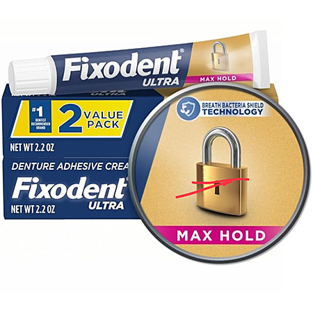 Fixodent Ultra Max Hold Denture Adhesive, 2.2 Ounce (Pack of 2) - $4.68 at Amazon