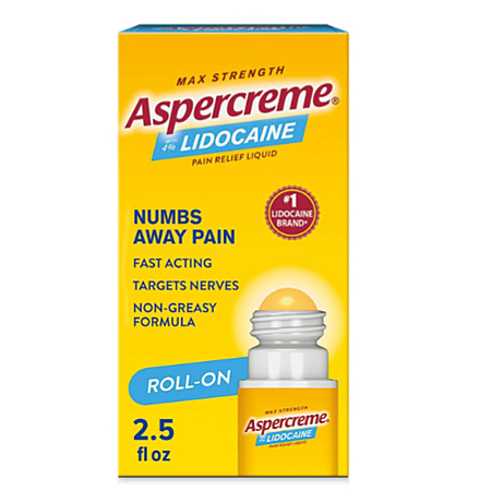 Aspercreme Odor Free Max Strength Lidocaine Pain Relief Liquid with Roll-On No Mess Applicator, 2.5 oz. - $6.28 at Amazon