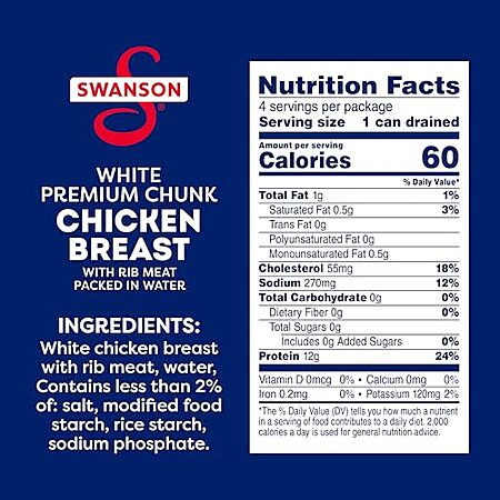 [S&S] $18.74: 6 × 4-Pack 4.5-Oz SWANSON S White Premium Chunk Chicken Breast in Water ($3.12 pack / 78.1¢ ea) at Amazon