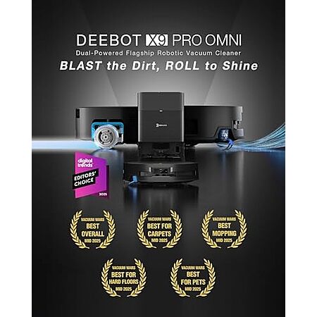 Model: ECOVACS DEEBOT X9 PRO Omni Robot Vacuum and Mop, Blast™ 16,600Pa Suction, OZMO Roller Instant Self-Washing Mopping, ZeroTangle™ 3.0, Triple Lift System, AI Smart Navigation, Hands-Free Omni Station