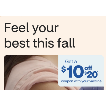 Flushot for all family members get 10$ off 20 coupon including clearance