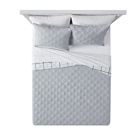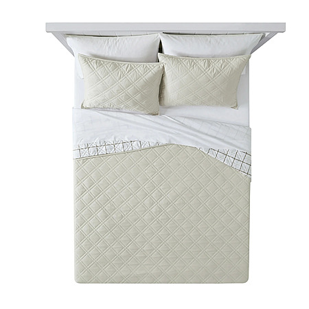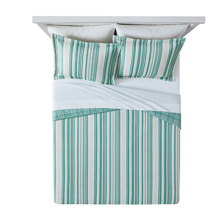 Model: Mainstays Green Vertical Stripe Microfiber Quilt, Full/Queen - Reversible