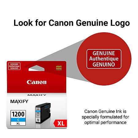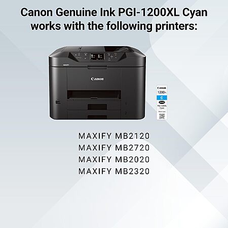 $13:Canon PGI-1200XL Genuine Cyan Ink Tank, Compatible with MB2120, MB2720, B2020, and MB2320 (Optional) Printers