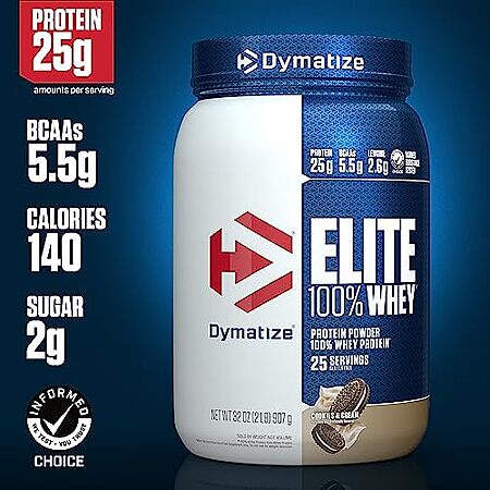 Model: Dymatize Elite 100% Whey Protein Powder, 25g Protein, 5.5g BCAAs & 2.7g L-Leucine, Quick Absorbing & Fast Digesting for Optimal Muscle Recovery, Cookies & Cream, 2 Pound, 25 Servings