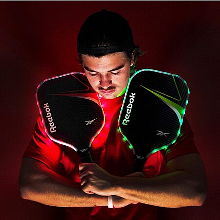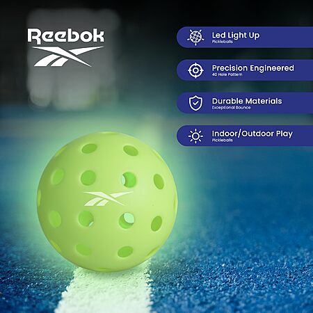 $35: Reebok - Pickleball Set for 2 Players, Includes 2 Paddles with Cushion Grip and 2 Light-Up Balls, Perfect for Night Play, Durable, Engineered for Sports Enthusiasts