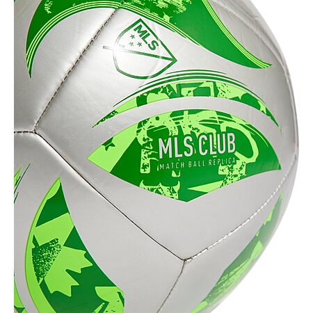 $10*: adidas MLS Club Replica Soccer Ball (Silver Metallic/Green, Size 5) at Amazon