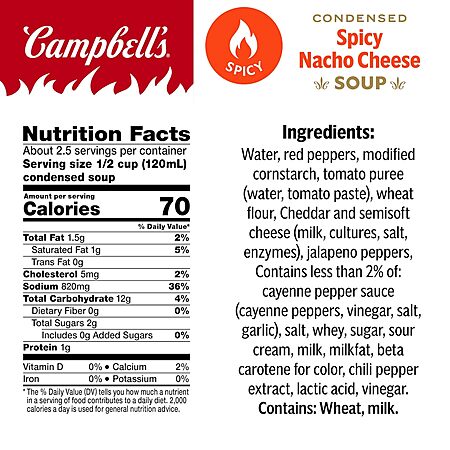 Model: Campbell's Condensed Spicy Nacho Cheese Soup, 10.75 oz Can