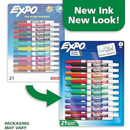 [S&S] $11.09*: 21-Count EXPO Fine Tip Dry Erase Markers (Assorted Colors) at Amazon
