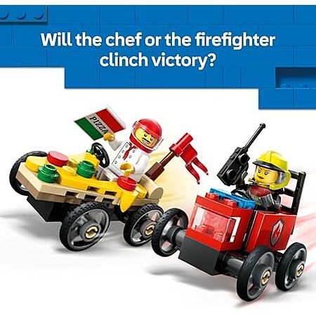 $5.59: 70-Piece LEGO City: Soapbox Racing - Pizza vs. Fire Truck Race Car Pack (60458, 2025) & More at Amazon