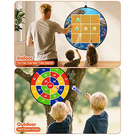 - Fun for Any Event - Our 26" double-side large dart board & tic tac toe ball toss game set is great for backyard barbecues, picnics in the park, camping trips, family reunions, birthday parties, field days, beach outings, Fourth of July gathering, fall themed festival party games, thanksgiving party games, halloween party games, Christmas party games etc. This outdoor and indoor game can bring joy and create unforgettable memories. A great gift for boys and girls aged 4 5 6 7 8 9 10 11 12