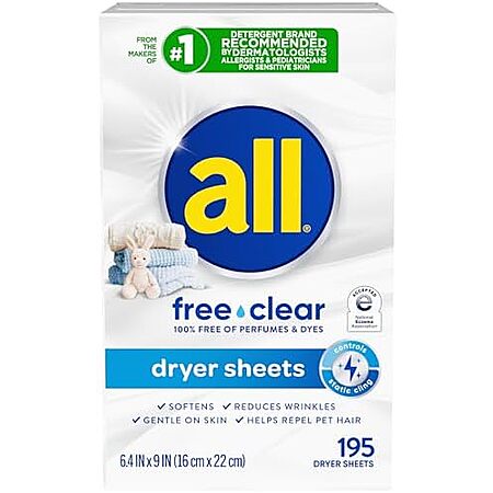 [S&S] $6.07*: 195-pk all Free Clear Dryer Sheets for Sensitive Skin at Amazon