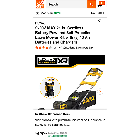 Dewalt DCMWSP256U2 20V Lawnmower - found at my local Home Depot in Montville NJ. Even shows the clearance price online when bought in store so check if your local store has this price or better.